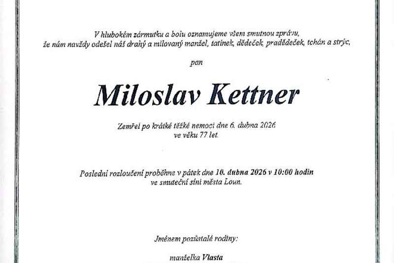 S velkou lítostí Vám oznamujeme, že v pondělí 6. dubna 2026 zemřel po krátké těžké nemoci ve věku krásných 77 let Zasloužilý hasič Miloslav Kettner.